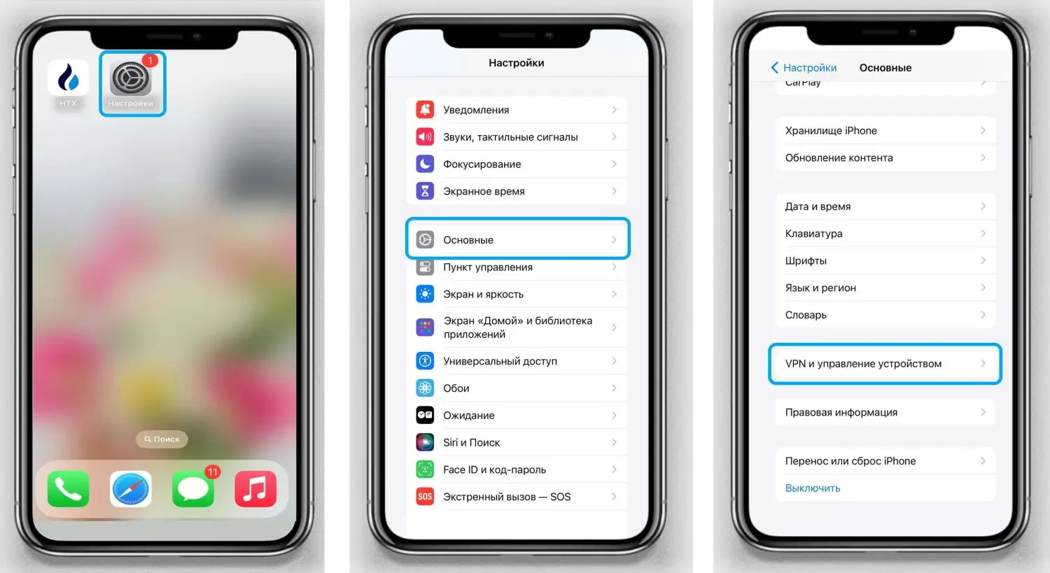 - Перейдите в «Настройки», «Основные», «VPN и управление устройством».