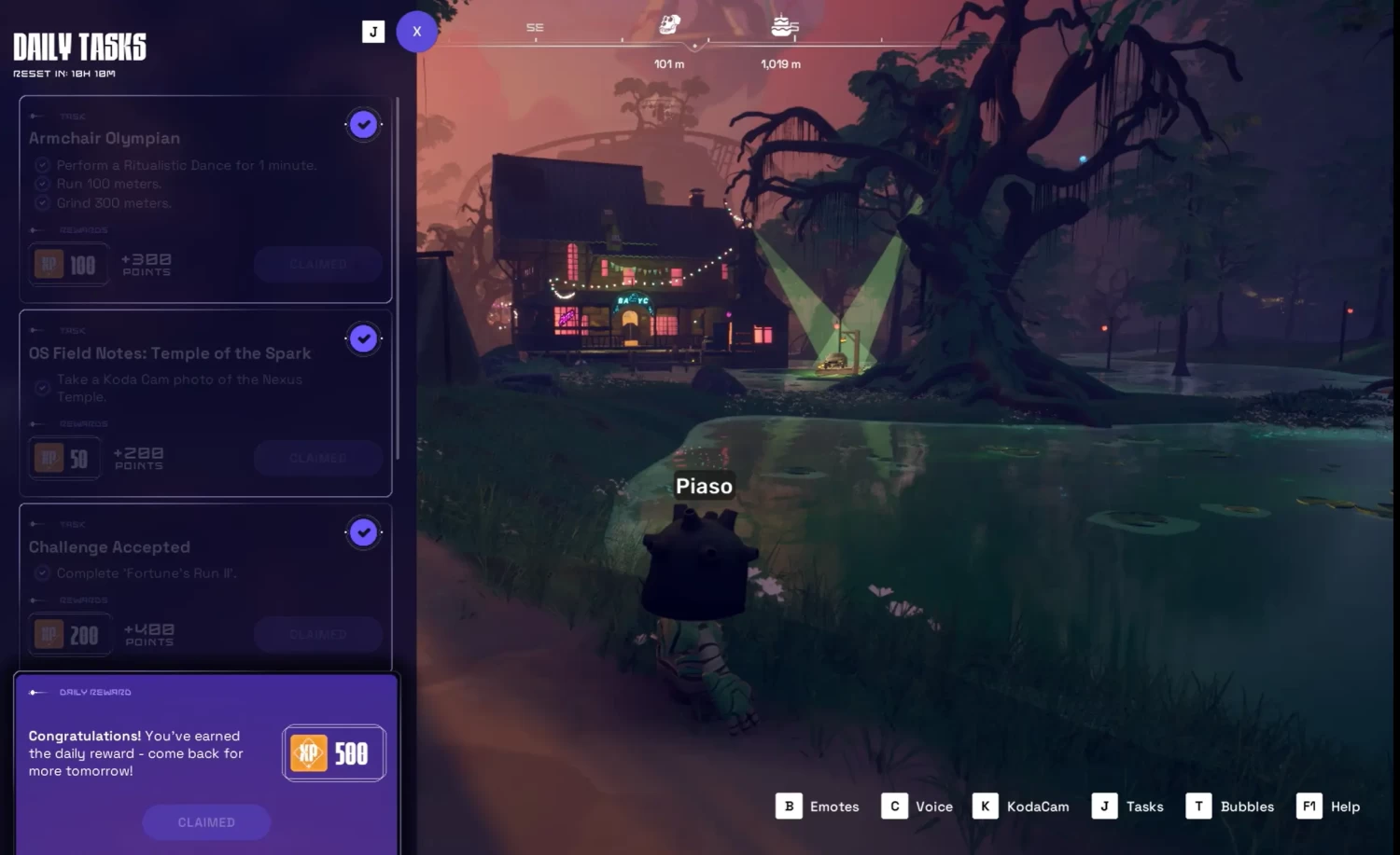 В Yuga Labs обучение метавселенной решили делать через уже знакомую для криптанов опцию ежедневных заданий (Daily Quests), которая выполняет сразу две функции: начисление очков игрового опыта (XP) и постепенное знакомство с механиками мира. Игрокам на ежедневной основе (в 8 утра по Москве) обновляют 5 челленджей, за выполнение которых дают XP + бонусные 500 XP.