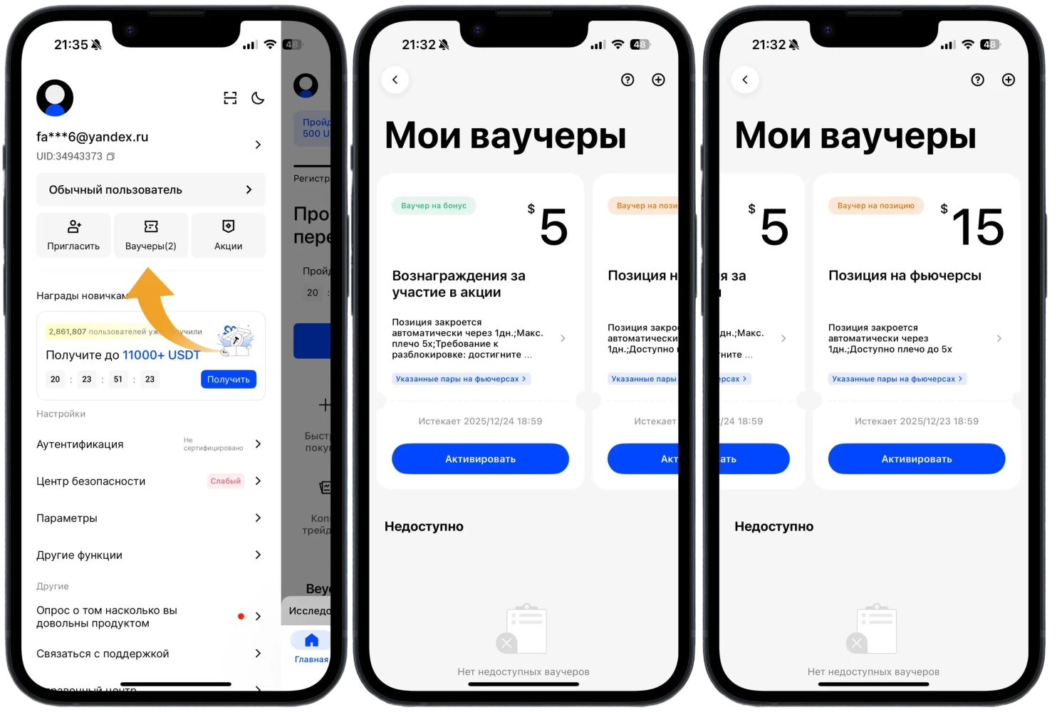 🟦 Ваучер на монету – это бесплатная раздача токенов, которые можно мгновенно вывести или использовать для сделок.