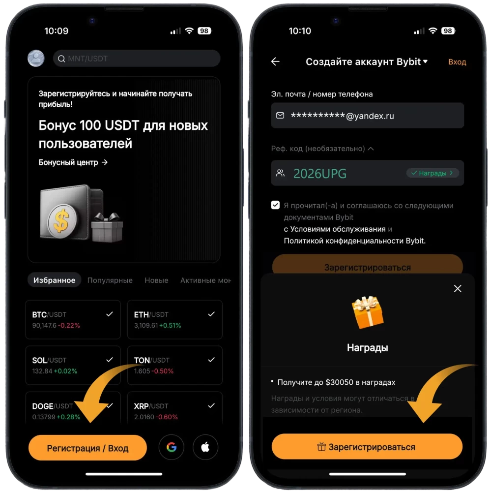 Реферальный код Bybit для регистрации: 2026UPG. Ввести код необходимо при создании аккаунта, он даёт привилегии новым пользователям: деривативный или спотовый купон до 20 USDT без депозита, эйрдроп 20 USDT за пополнение баланса и повышенный торговый бонус до 30 000 USDT за торговлю. Добавить промокод после регистрации можно в течение 14 дней, но изменить уже введённый код невозможно.