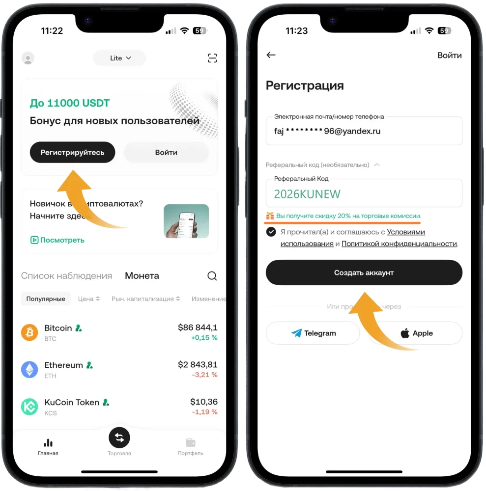 Реферальный код KuCoin 2026KUNEW – этот промокод подходит для ввода при регистрации через сайт или мобильное приложение биржи. Он даёт скидку 20% на торговые комиссии и бонус до 11 000 USDT в зоне для начинающих. Изменить код после создания профиля невозможно.